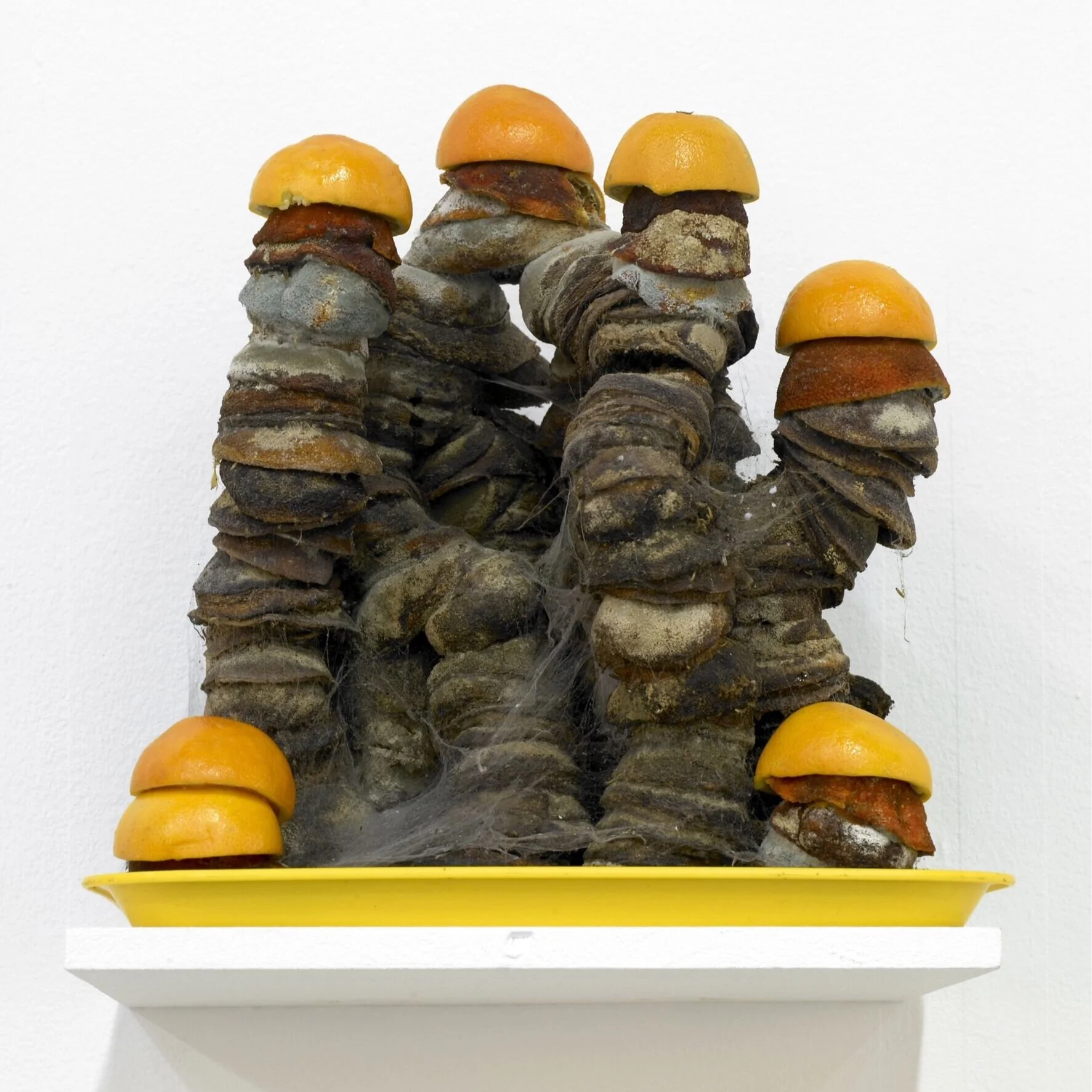 When thinking, approaching or making an art work although the process being a lively action that requires physical movement, the end result is usually always fixed and frozen. Like frozen in time and reality once it is finished. But mould or “rubbish” art has a life of its own. Dieter Roth’s mould painting are a mix of paint but also food and organic component that he let’s rot. Like Blazy’s orange, the artwork changes daily, taking different shapes, colours, texture and even odour, deterioration everyday an so giving us new image to look at everyday.